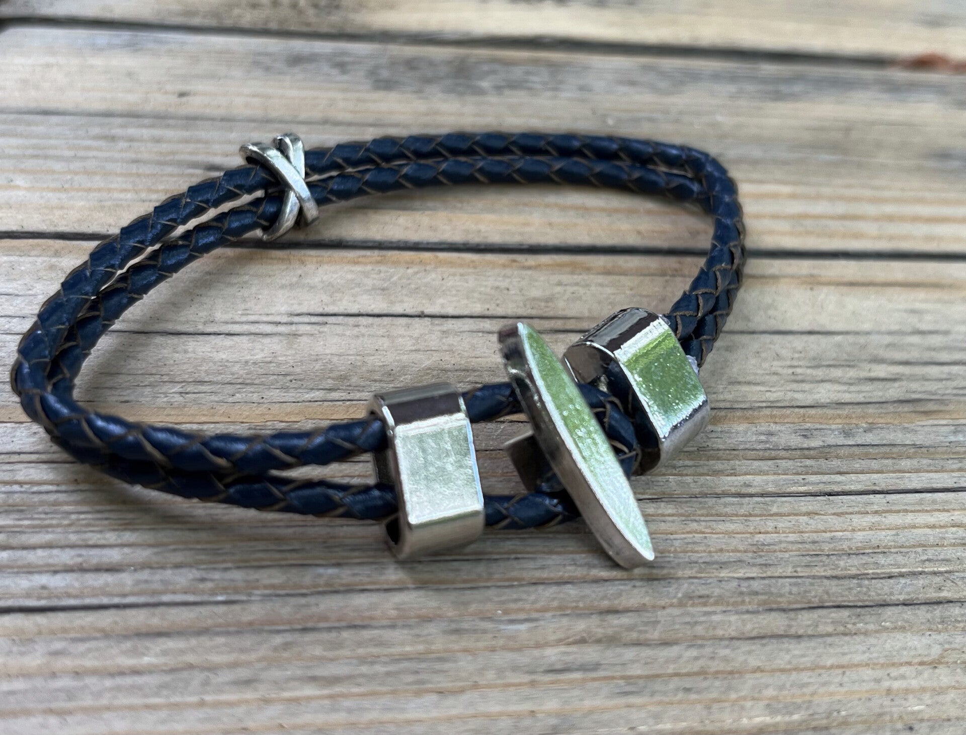 Bracelet cordon tressé, attache métal argenté et charm métal argenté.