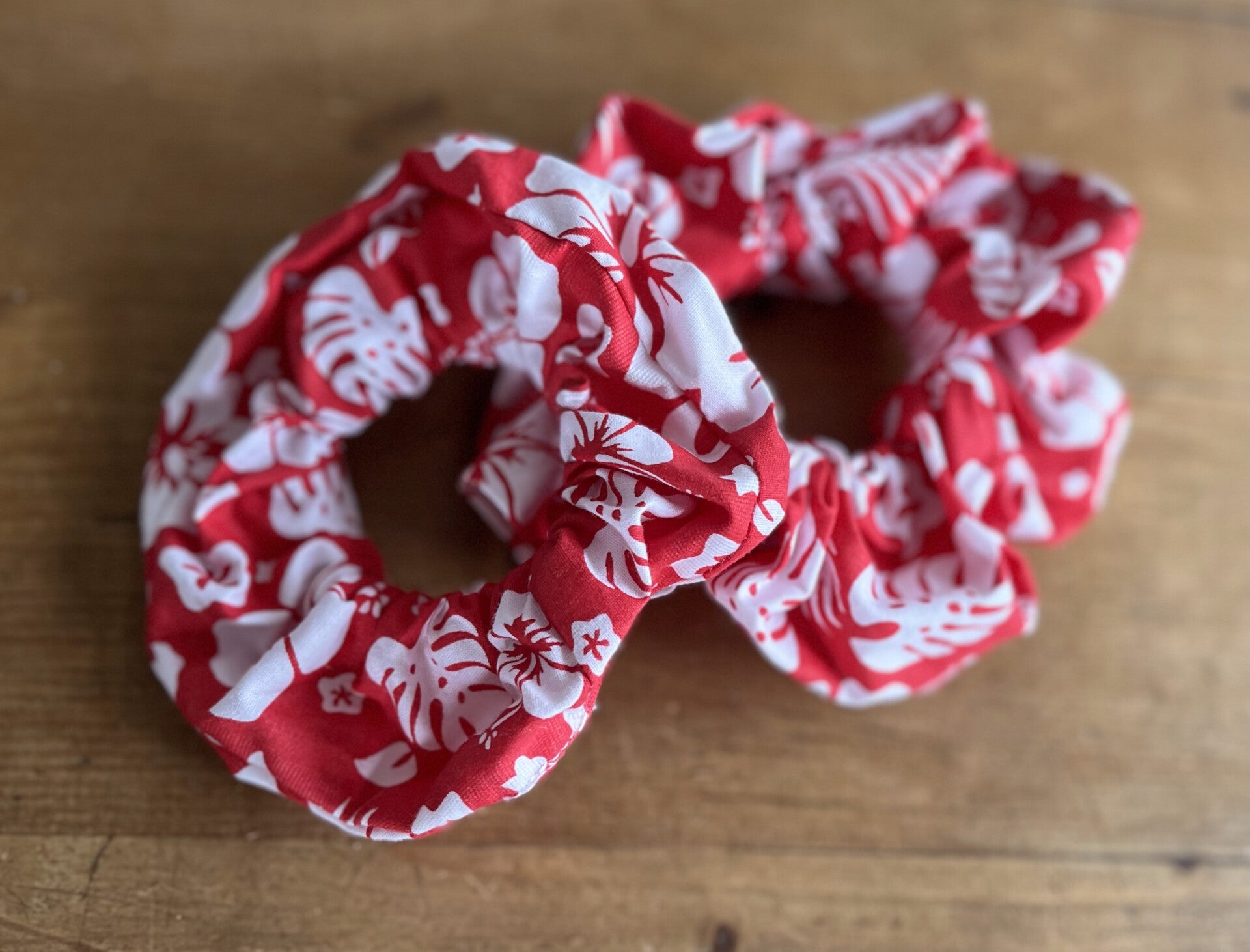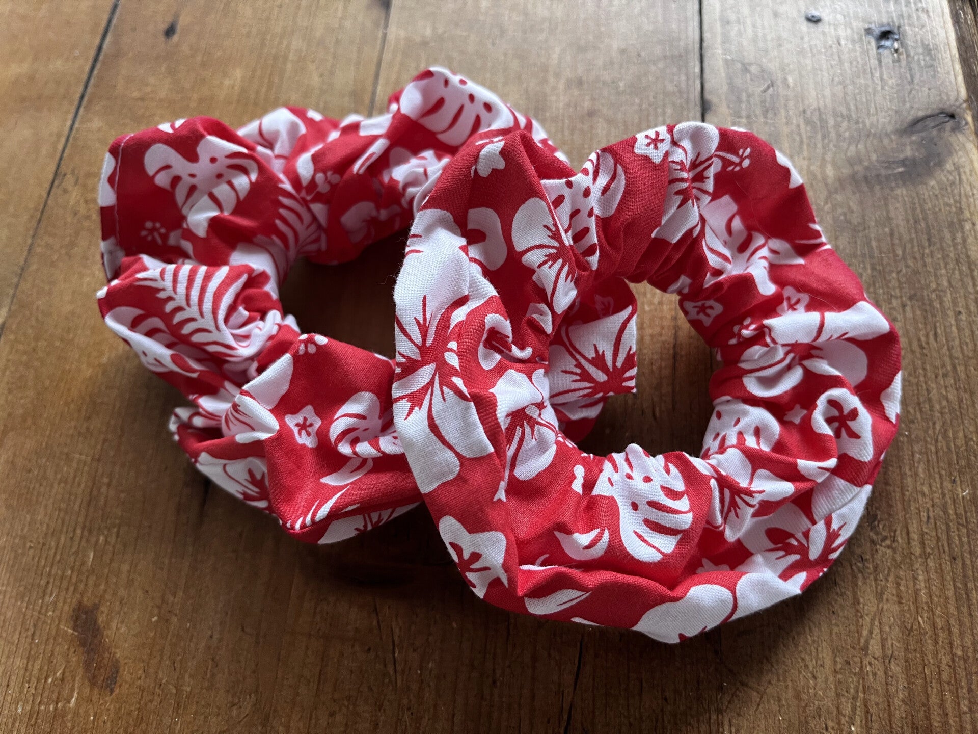 Chouchou fleurs d'hibiscus rouge et blanc.